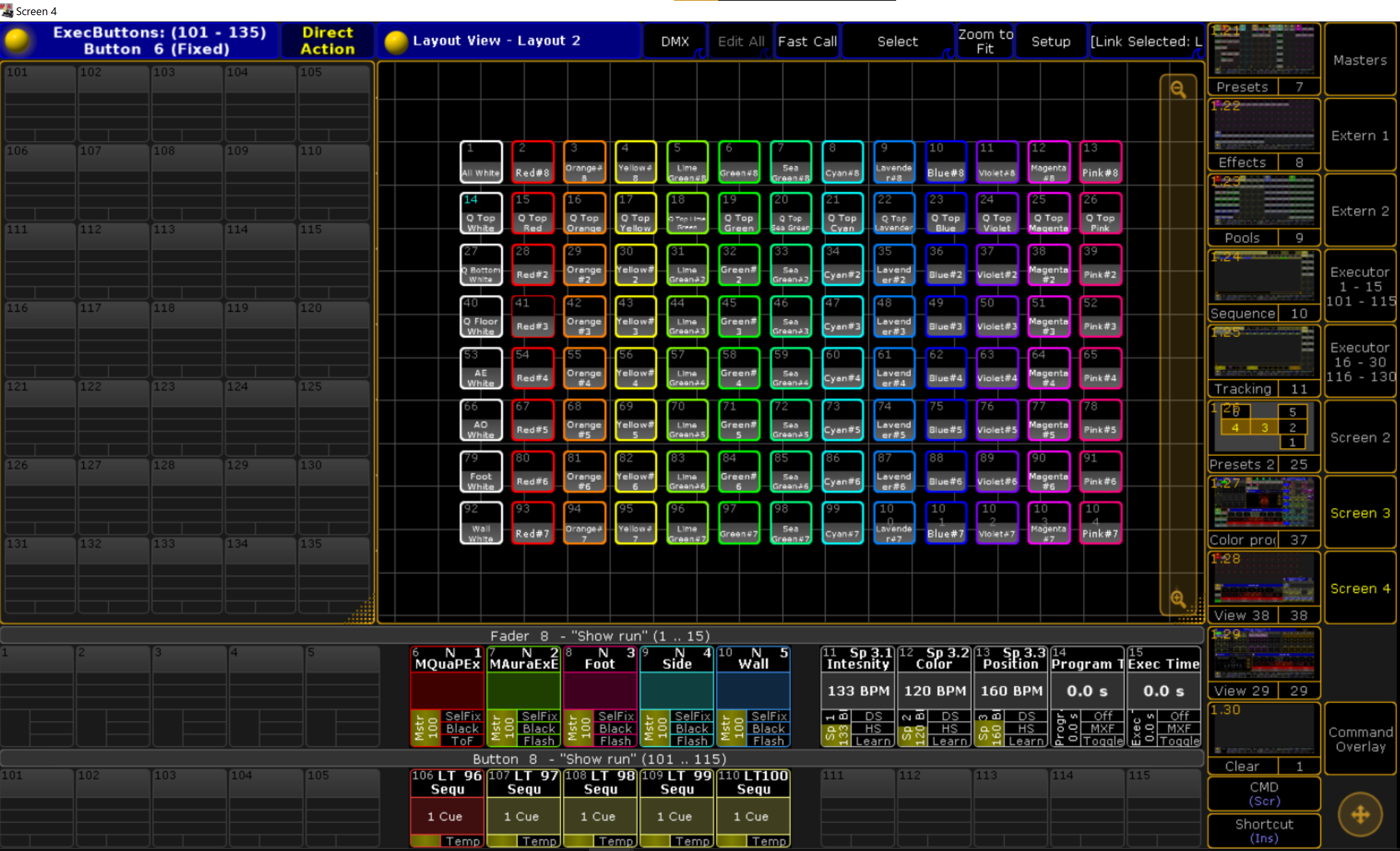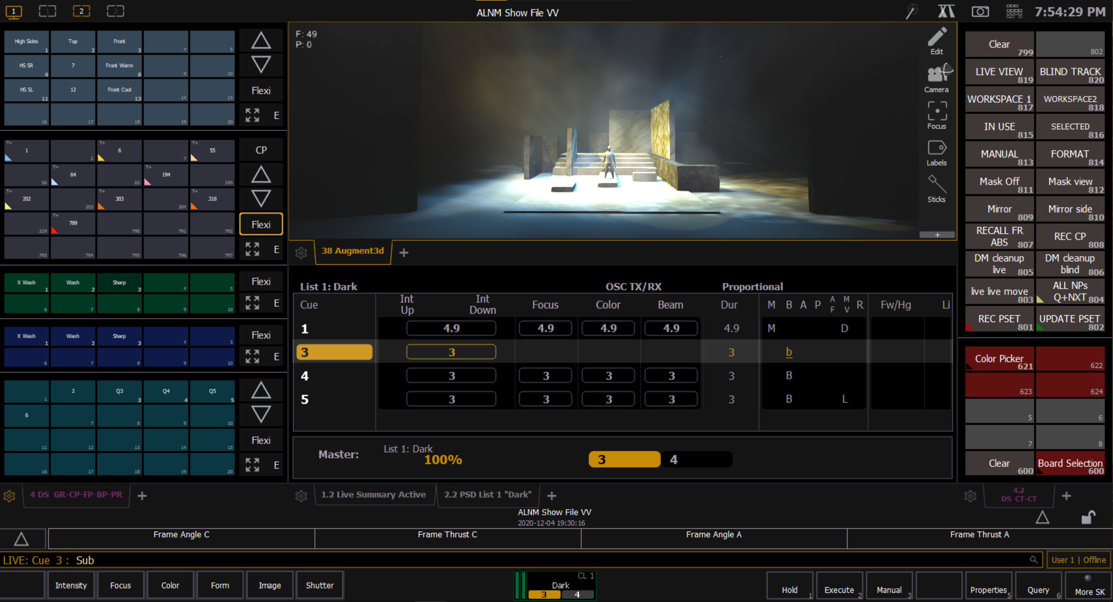 The following pictures show the work space I have set-up for moving light programming. I used ETC nomad and GrandMA 2 to create the workspaces to complete various projects. The top photo is the ETC nomad workspace and the bottom two are GrandMA 2.